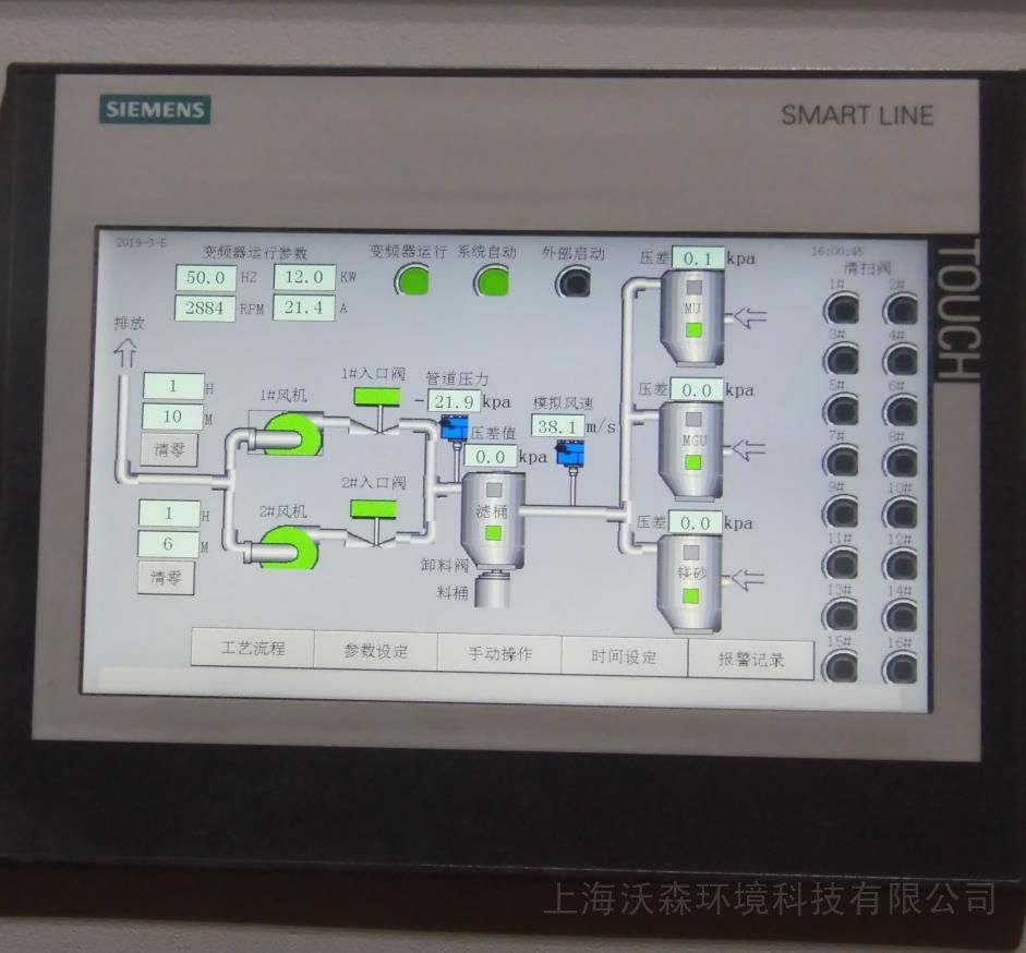 清灰自動(dòng):程序自動(dòng)完成一次(或幾次,可以設(shè)定,主要根據(jù)灰塵量決定自動(dòng)清灰的頻率)全系統(tǒng)清灰過程;
